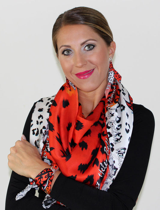 Leopardo Arancio Foulard in Seta cm. 110x110