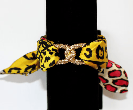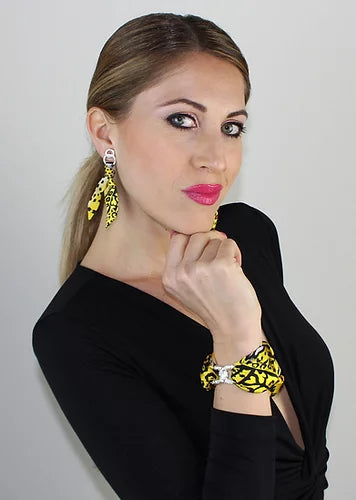 Leopardo Giallo Set Bracciale & Orecchini in Seta Sconto 30%