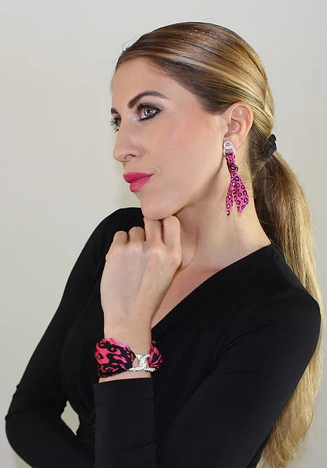 Leopardo Rosa Set Bracciale&Orecchini in Seta