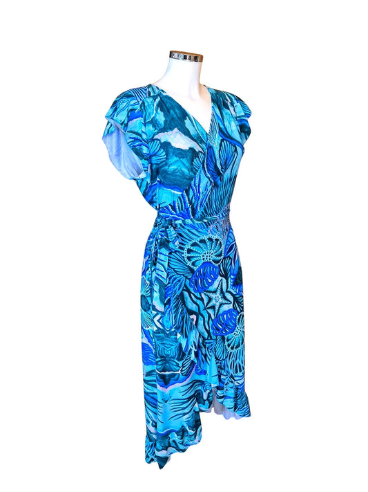 Corallo Turchese Vestito Incrociato Lungo