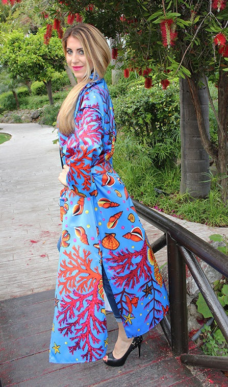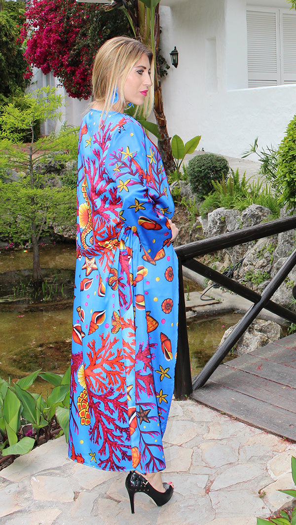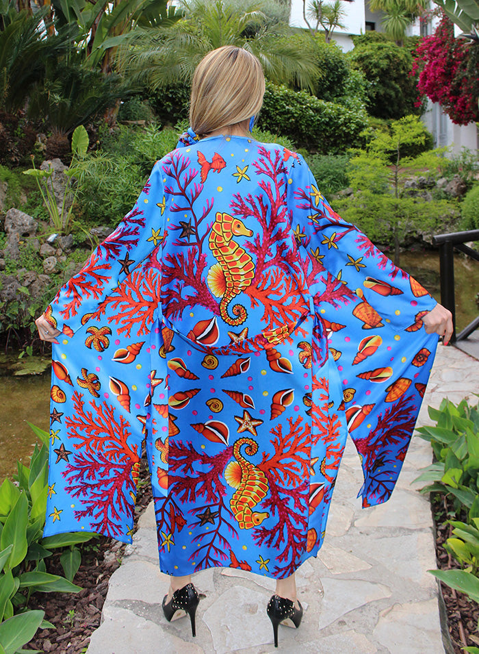 Kimono Lungo stampato con l'esclusivo disegno della Pittrice Helen Bellart e fatto a mano da abili Artigiani Spagnoli.