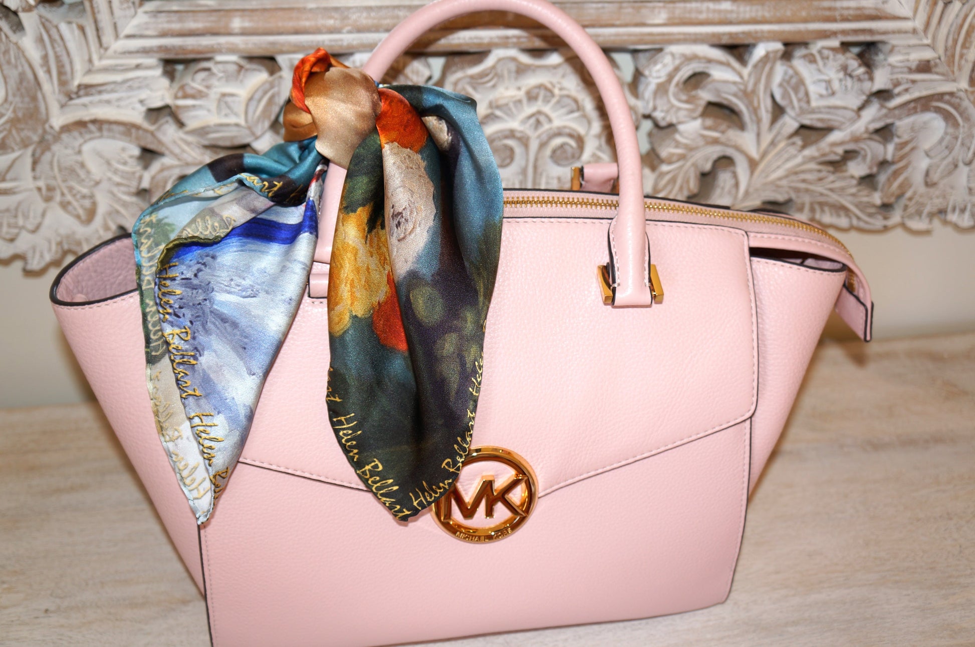Foulard ( 100% Seta ) stampato con disegno esclusivo e con firma dell’Artista Spagnola Helen Bellart.