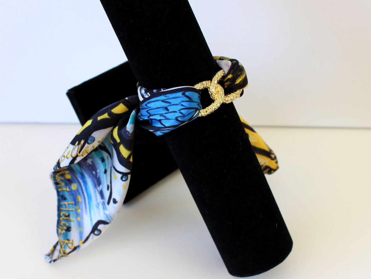 Originale ed Unico Bracciale in Seta composto da un Foulard e da due Anelli.