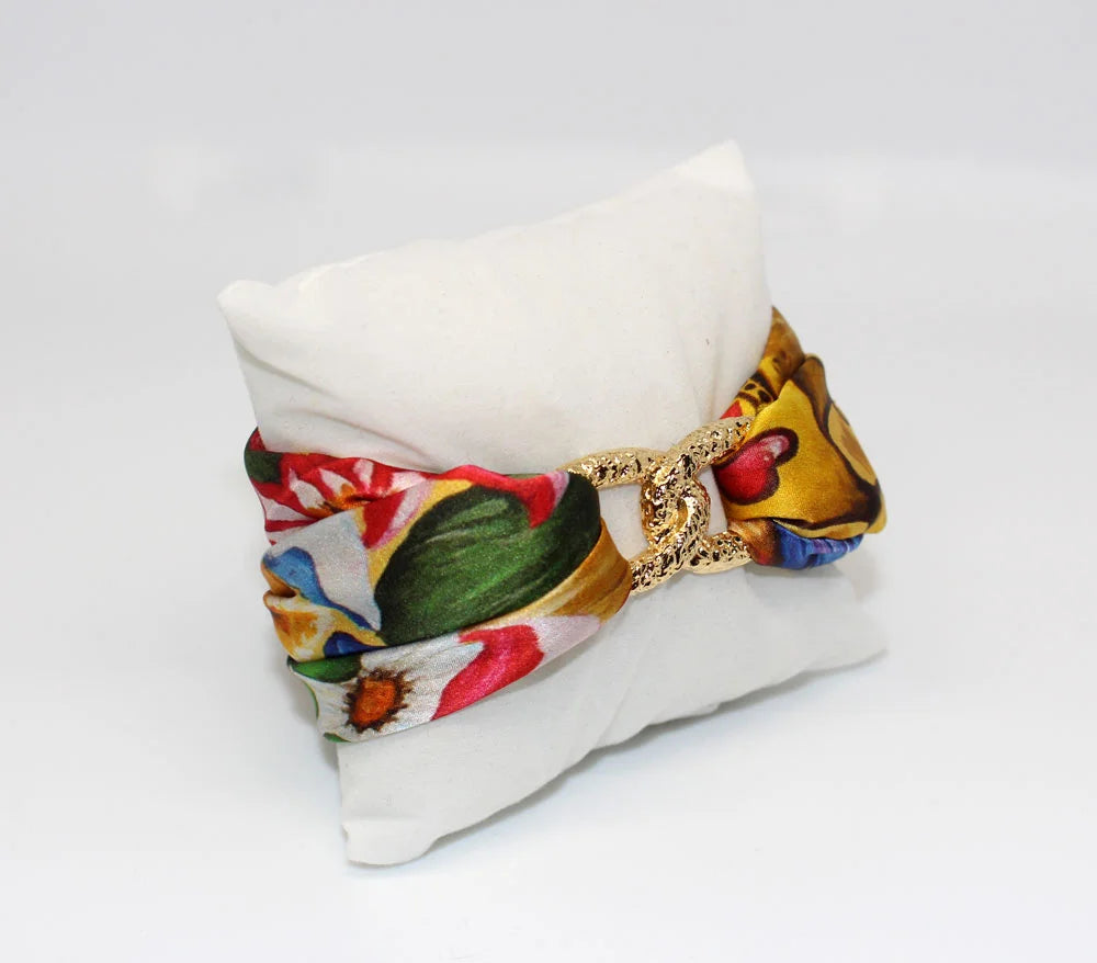 Set composto da un Bracciale e da due Orecchini, sia il Bracciale che gli Orecchini sono in Seta 100%.
