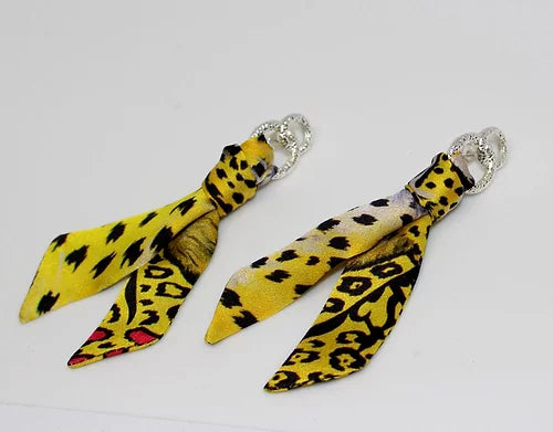 Orecchini in Seta, stampati con l’esclusivo disegno dell’Artista Helen Bellart e fatti a mano da abili Artigiani Spagnoli.