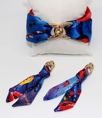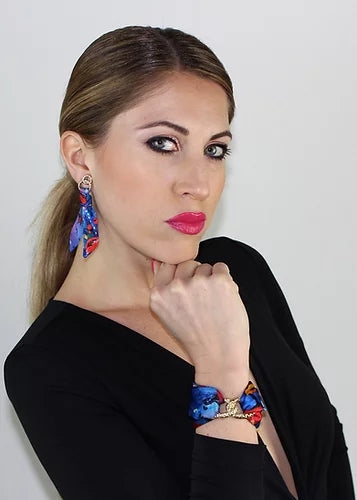 Orecchini in Seta, stampati con l’esclusivo disegno dell’Artista Helen Bellart e fatti a mano da abili Artigiani Spagnoli.